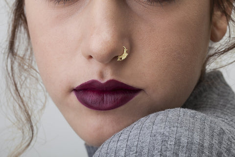 Asymmetric Indian Nose Ring in Solid 14k Gold - Monica