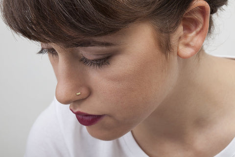 Bar Nose Stud in 14k Gold - Bo (Lookbook)